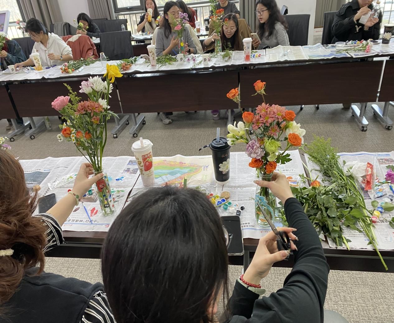 参与活动的2023级硕士研究生田甜同学说到:“能在这样有趣的活动中放松心情,同时还能发挥创意,真的很开心。涂鸦和插花结合在一起,既有艺术感,又很治愈。”2024级硕士研究生赵书萱同学感慨道:“看着自己亲手创作的花瓶以及精心设计的花束,特别有成就感。将作品带回宿舍后,没能参加活动的舍友们都羡慕不已,大家纷纷拍照记录,顿时整个房间都充满了春天的气息和欢声笑语。”