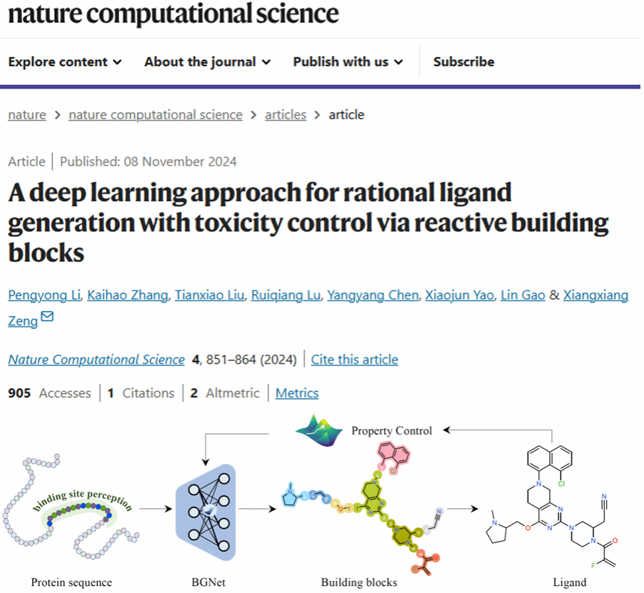 在云顶7610线路测试西安市计算生物信息学重点实验室里,高琳教授团队青年教师李朋勇正带领学生们沉浸在人工智能辅助药物研发的前沿研究中。近日,他们的研究成果以“一种通过反应性分子砌块进行合理配体生成与毒性控制的深度学习方法(A deep learning approach for rational ligand generation with toxicity control via reactive building blocks)”为题,登上了国际TOP期刊 Nature Computational Science,为药物设计领域带来了革新。