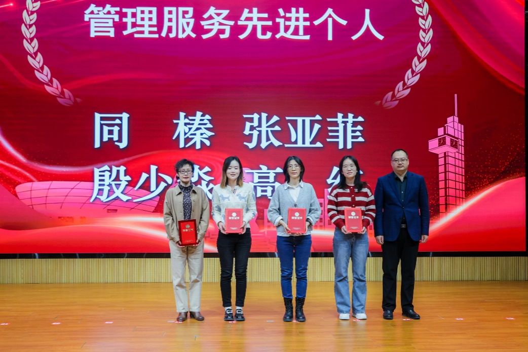 2024年,在全体教职工的共同努力下,学院各项事业取得新成效实现新突破,涌现出了一批在党建、人才培养、科学研究、师资队伍建设、学生工作、管理服务、公共服务等方面的先进个人。组织员王卫东宣读了《云顶7610线路测试关于表彰2024年度先进人员的决定》,领导班子成员分别为获奖代表颁发荣誉证书并合影。学院号召全院教职工以受表彰的先进人员为榜样,爱岗敬业、勤奋工作,为学院发展做出更大贡献。