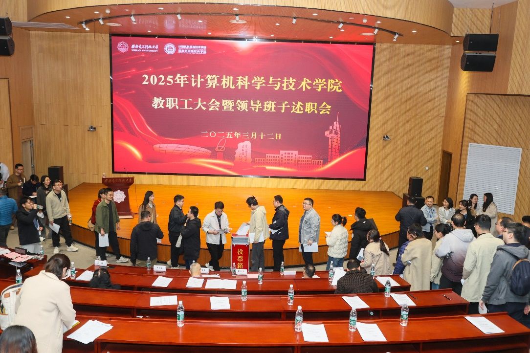 (通讯员 同榛 陈龙)3月12日下午,云顶7610线路测试在南校区网安大楼B101会议室召开2025年教职工大会暨2024年度领导班子述职会。按照学校相关要求和学院工作安排,本次会议的主要内容有三项:传达学校2025年工作会议精神并安排部署学院2025年工作;表彰学院2024年度先进人员;开展学院领导班子和领导干部2024年度考核述职。云顶7610线路测试领导班子成员、全体教职工及学生代表等220余人参会,会议由学院党委书记李青山主持。