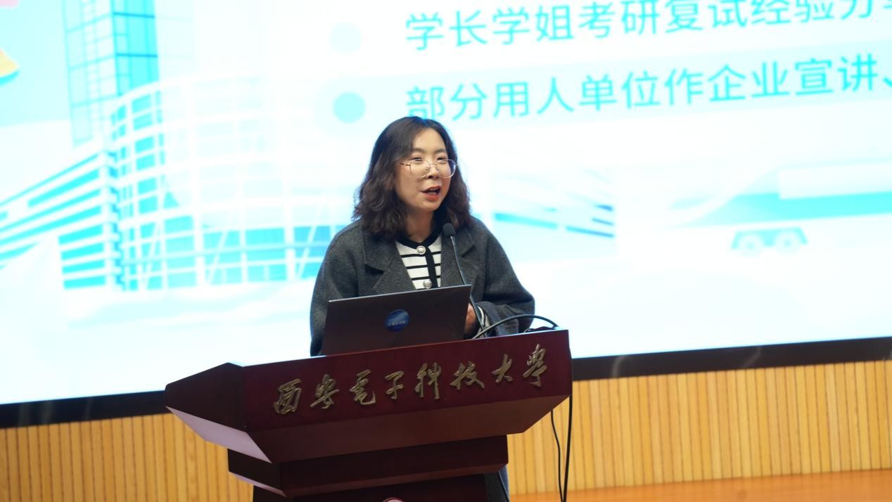 就业指导中心詹奉珍结合案例分析,向同学们详细解读了当前的就业形势,并针对求职心态提供了实用的建议。她鼓励大家积极把握就业规律,充分利用学校和学院提供的就业服务平台和资源,全面提升求职能力,用实际行动迎接挑战。