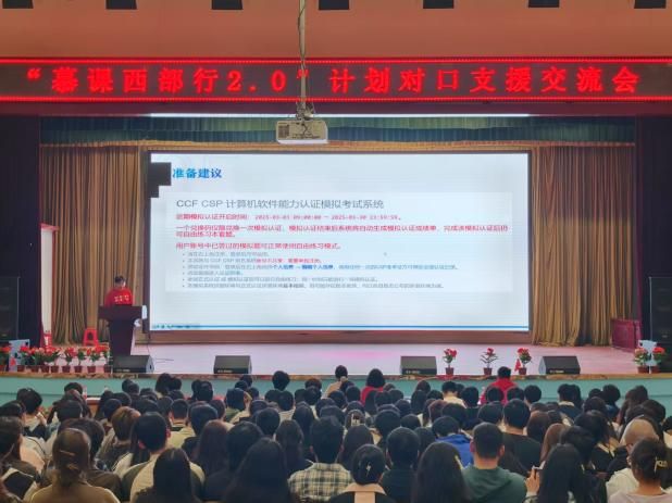 为激发学生对计算机专业的兴趣和竞争意识,助教代表为和田学院的学生开展计算机认证和竞赛经验分享。张仕浩结合自身升学就业经验,为同学们介绍了CCF CSP认证、软考以及全国计算机等级考试,引导学生规划未来职业发展,积极通过参与各类认证提升实践能力。刘飞扬从创新创业竞赛、学科竞赛以及编程竞赛3个不同的类型中为同学们选择了具有代表性的互联网+、数学建模竞赛以及IEEE极限编程比赛,为同学们详细介绍备赛策略以及团队合作的重要性,建议同学们通过竞赛的参与深刻感受到计算机技术的创新魅力和实践价值。在分享会拓展课堂上,西电助教与同学们互动问答,为同学们种下了课外学习拓展的种子。