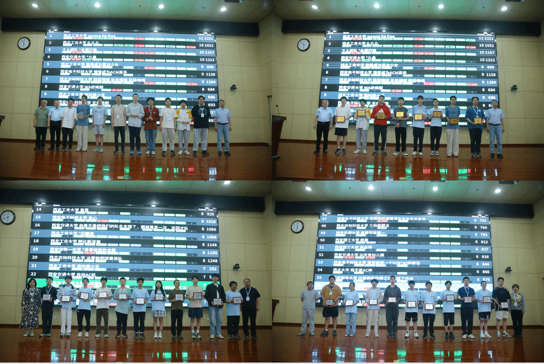 经过5个小时的奋战,比赛最终产生了16支金奖队伍、32支银奖队伍和48支铜奖队伍,其中来自西北工业大学的队伍荣获冠军,西安电子科技大学和西北农林科技大学的队伍分别获得亚军和季军。